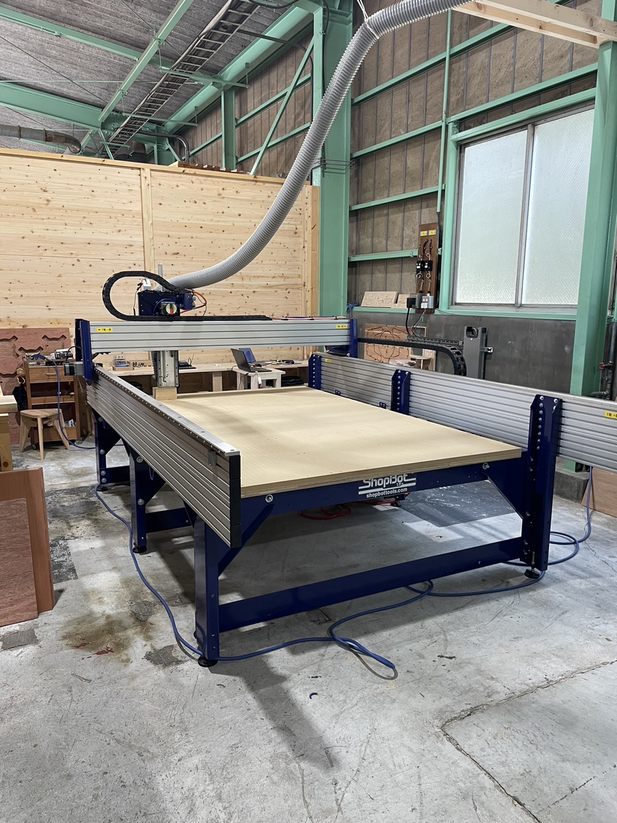 弊社では2024年2月から「Shop Bot」という機械を使用した木材の加工を行っております。この「Shop Bot」は形作りたいものの切り抜き線を描いた図を作れば、原則、どんな形でもくり貫いたり彫り込んだりできます。10cm以下の小さなものから1m越えの大きなものまで、この機械一つで加工が可能です。