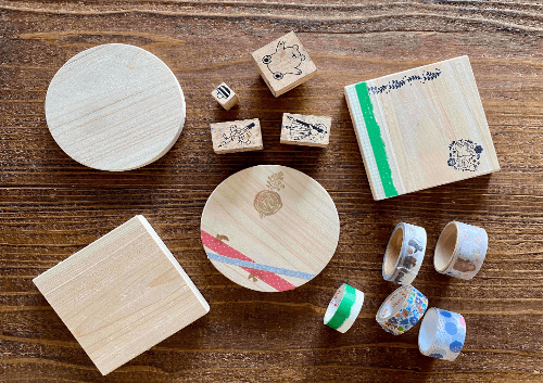 オリジナルコースター作り: ひのきがふんわり香るコースターに、スタンプを押したり絵を描いたりして、自分だけの「お気に入り」を作りましょう。お子様から大人まで、手作りの楽しさを満喫できるコーナーです。