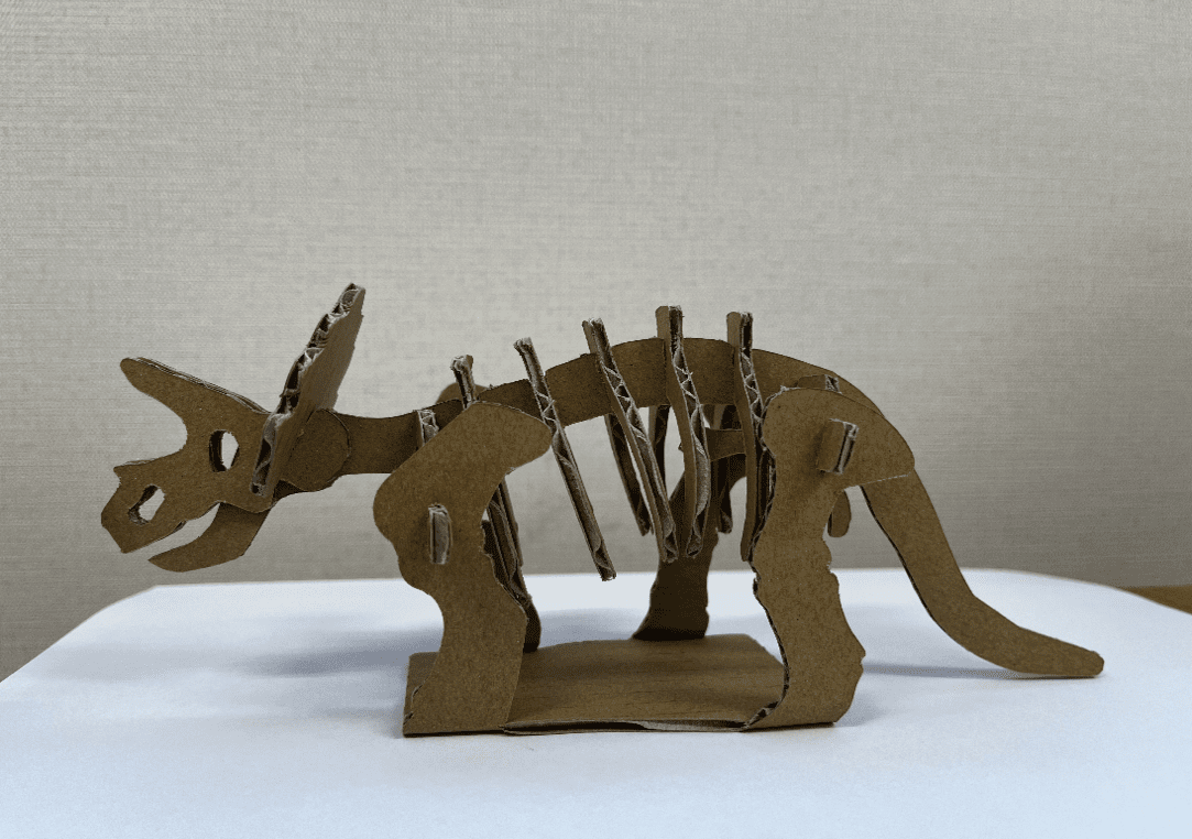 作ってみよう: 段ボールのミニ恐竜がかたち作られる工程を見学しながら、実際に機械ボタンを押したり、制作体験ができるコーナーもございます。(※有料)