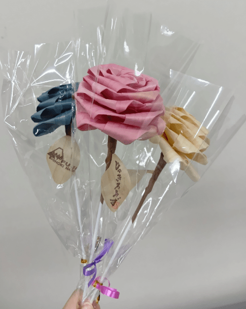 ひのきの香りが心地よい「ひのきろうず(ひのきのバラ)」、スマホスピーカー、スウェーデントーチ、ふじさんないす(木製組立イス)等をフェスタ限定のお得な価格で販売いたします。