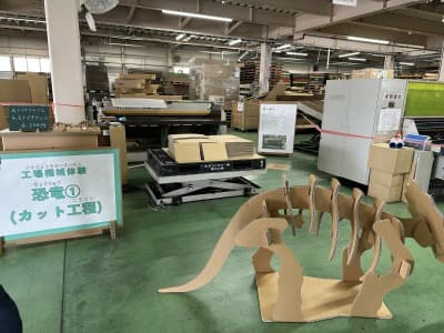 普段はなかなか見ることができない段ボール工場の見学ブースや、実際に機械に触れて加工を体験できるブースに加え、フォークリフトデモンストレーション、家づくり儀式体験の餅投げ、コロンビア先生わくわく理科実験、岳南Fモスペリオの選手とのミニサッカーやスタンプラリーなど、多彩な催しを実施しました。